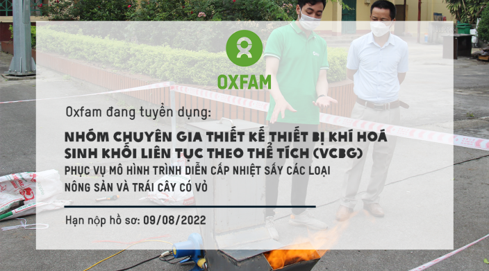 - Ưu tiên các ứng viên đã tham gia khóa đào tạo ToT về công nghệ khí hóa VCBG của Dự án hoặc có am hiểu về công nghệ khí hóa nói chung. Trường hợp chưa biết về công nghệ VCBG thì phải cam kết sẵn sàng học và tìm hiểu về VCBG trong quá trình tham gia Trình diễn Kỹ thuật.