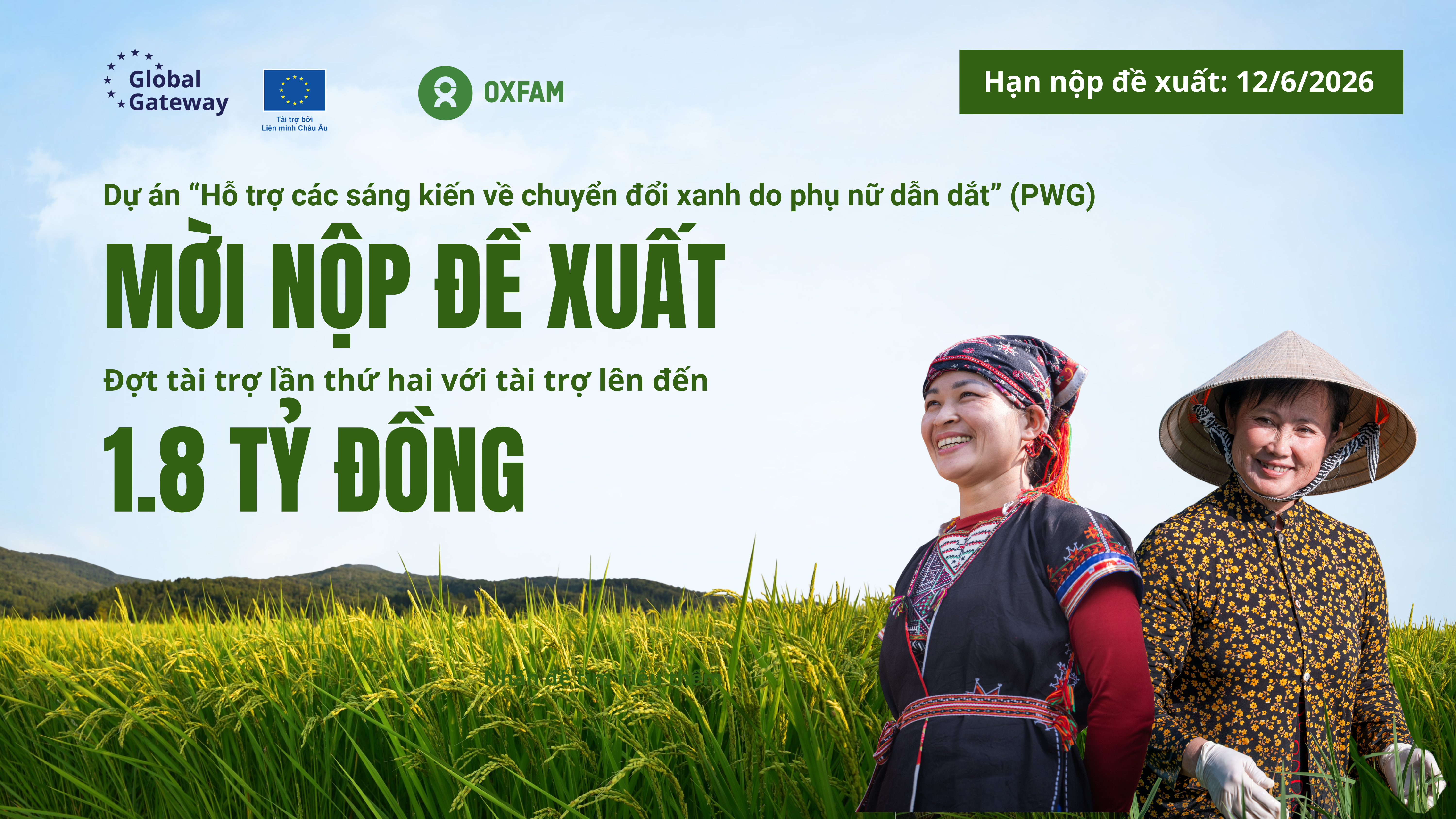Tổ chức Oxfam tại Việt Nam trân trọng kính mời các tổ chức đủ điều kiện, quan tâm nộp hồ sơ xin tài trợ lần thứ hai của Dự án PWG theo hướng dẫn dưới đây: